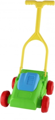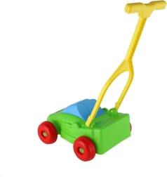 Plastová sekačka je robustní a přitom lehká, takže ji děti snadno tlačí doma i venku.