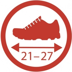 Popruhy a pružný tvar umožní snadné nasazení na různé dětské boty a spolehlivé držení i při svižné jízdě.