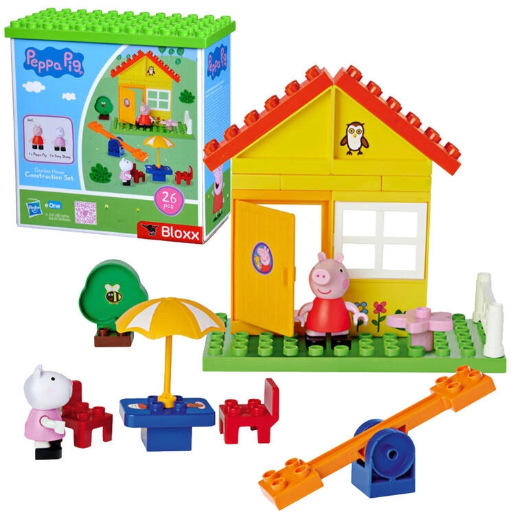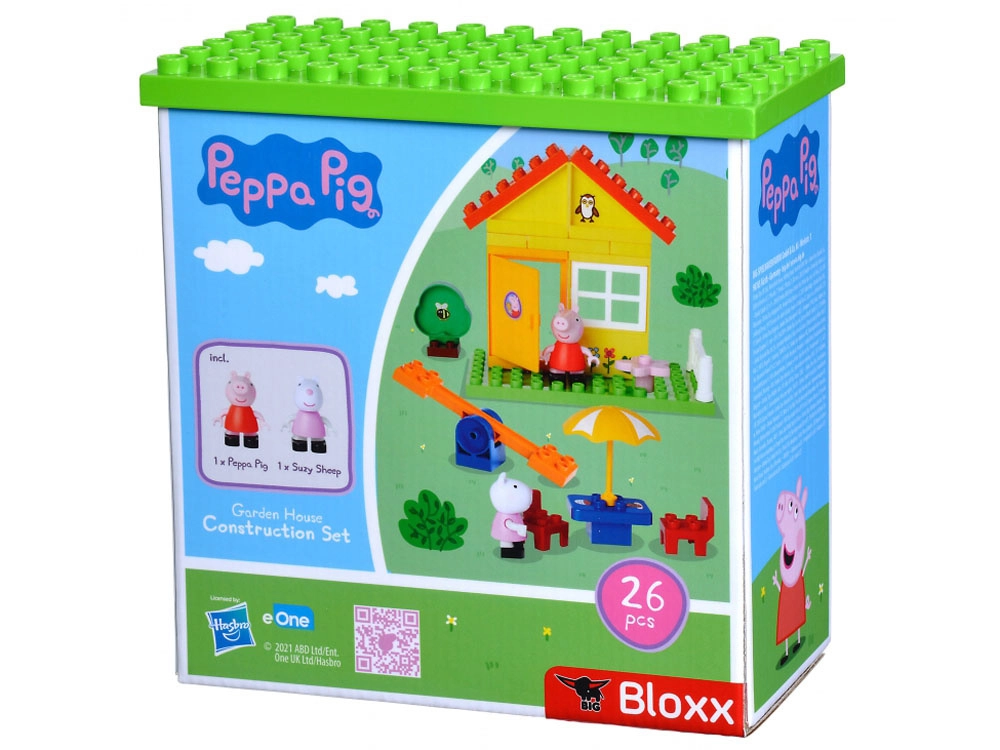Postavte si roztomilý domeček se zahrádkou a doplňky a užijte si hodiny zábavné hry ve světě PEPPA PIG. Sada obsahuje 26 dílků v pestrých barvách a dvě figurky – Peppu a Suzy – které vybízejí k tvoření vlastních příběhů a scén.