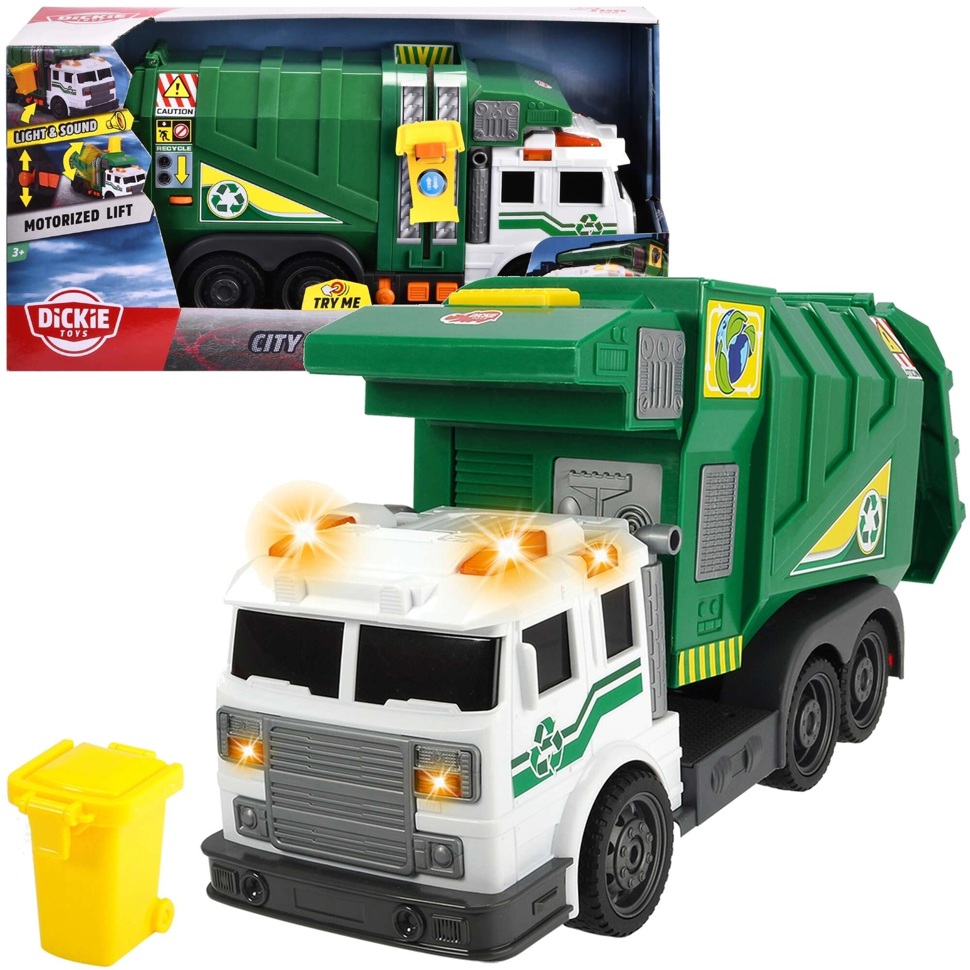 Realistické zelené popelářské auto City Cleaner od Dickie Toys nadchne děti světly a zvuky, funkčním zvedákem na žlutou popelnici a pohyblivými částmi. Skvělá hračka pro hraní na svoz odpadu, učení o recyklaci a rozvoj jemné motoriky.