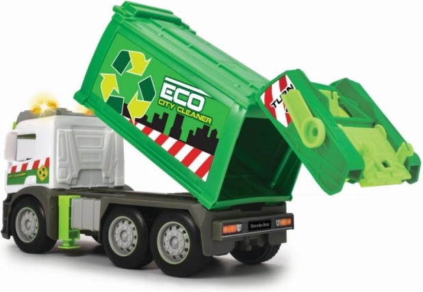 Díky licencovanému designu Mercedes‑Benz a odolnému plastovému provedení je hračka ideální pro každodenní hraní doma i venku. Podporuje rozvoj jemné motoriky, představivosti a učení se o třídění odpadu a péči o životní prostředí.