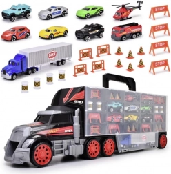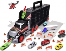 Velký kamionový kufřík s rukojetí pro snadné přenášení ukrývá bohatou sadu na hraní – 7 kovových autíček, nákladní auto a vrtulník. Díky manuální vystřelovací funkci z kabiny mohou děti odstartovat závod během vteřiny. Robustní provedení a délka 62 cm zaručují spoustu zábavy i praktické uložení a organizaci sbírky.