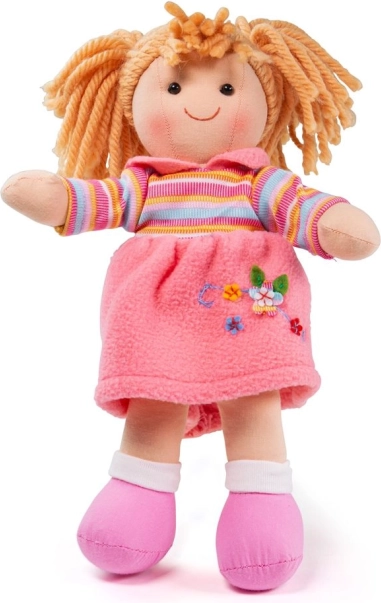 Panenka Jenny značky Bigjigs Toys je navržena s ohledem na bezpečnost a potěšení dětí. Je vyrobena z měkkého textilu, což z ní dělá ideálního parťáka na mazlení i každodenní hraní. Jenny je oblečena v pestrobarevném outfitu, který lze jednoduše měnit podle potřeby.