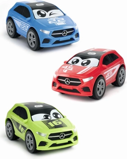 Vyberte si z červené, modré nebo zelené varianty. Licencovaný design MERCEDES s očima a čísly zaujme každé dítě.