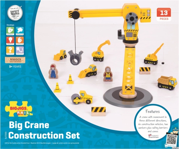 Objevte nadčasovou dřevěnou stavební sadu s velkým jeřábem od BIGJIGS RAIL, která přináší kreativní hru, rozvoj jemné motoriky a koordinace. Součástí jsou stavební stroje, figurky pracovníků, kužely a zábrany – vše připravené pro fantazijní staveniště. Kompatibilní s většinou dřevěných vláčkodrah na trhu.