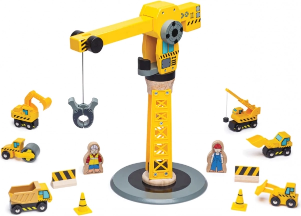 Tato kvalitní dřevěná stavebnice s otočným jeřábem a magnetickým hákem přináší dětem nekonečné možnosti hry. Díky robustnímu zpracování a bezpečným materiálům je ideální pro každodenní hraní a rozvoj dovedností. Jasné žluté provedení stavebních vozidel děti okamžitě zaujme.