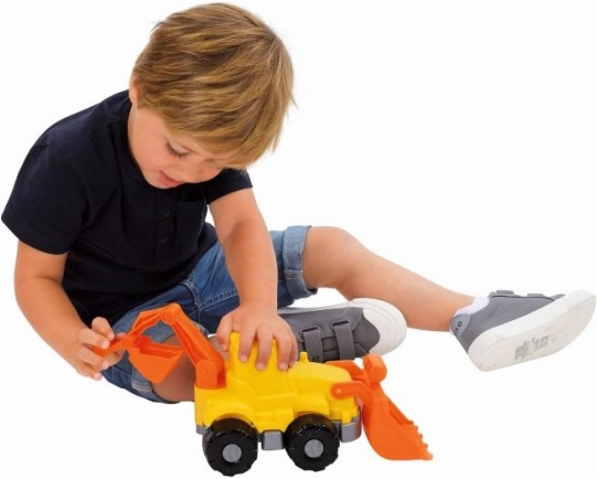 Tento odolný stavební plastový bagr je perfektní volbou pro malé stavitele. Pohyblivá přední radlice a zadní rypadlo umožňují dětem vytvářet různé scenérie na pískovišti nebo na pláži. Vhodný nejen k venkovní zábavě, ale i pro hru v interiéru.