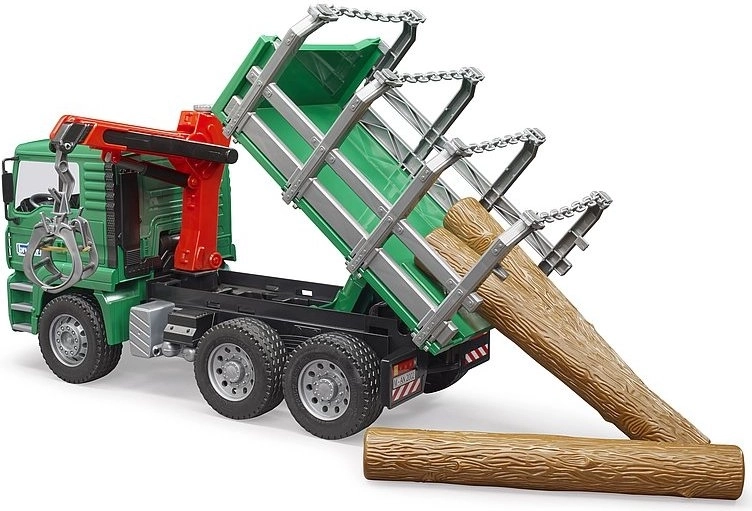 Bruder MAN nákladní vůz s přepravníkem dřeva je detailně propracovaný plastový model v měřítku 1:16. Vůz je vybaven otočným jeřábem za kabinou, který umožňuje snadné nakládání a vykládání dřeva. Součástí balení jsou tři realistické klády, které dělají hru ještě autentičtější.