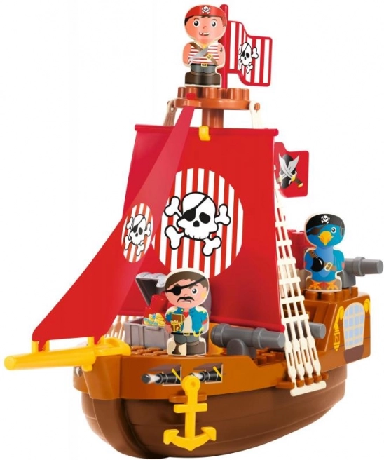 Ponořte se do světa pirátů s touto úžasnou plastovou pirátskou lodí, která je ideální pro nejmenší dobrodruhy. Loď přichází s barevnými plachtami ozdobenými motivy lebky a skrývá mnoho herních možností. S pirátštími figurkami a papouškem nabízí nespočet scénářů pro kreativní hraní.
