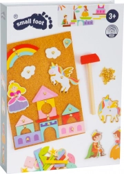 Ponořte se do magického světa kreativní zábavy s Zatloukací hrou Jednorožec. Tato hra umožňuje vašim dětem vytvářet různé scénky a příběhy za pomoci přiloženého kladívka a pestrých dřevěných tvarů. Sada obsahuje také předlohy, které mohou děti inspirovat k vytvoření pohádkových obrazů.