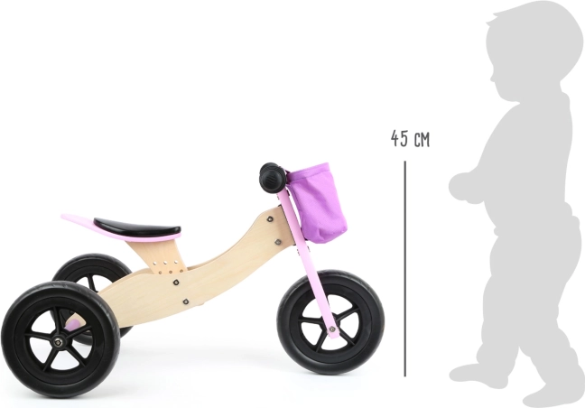 Toto odrážedlo kombinuje výhody tříkolky a dvoukolového odrážedla, aby si děti mohly postupně osvojovat dovednosti v rovnováze a jízdě.