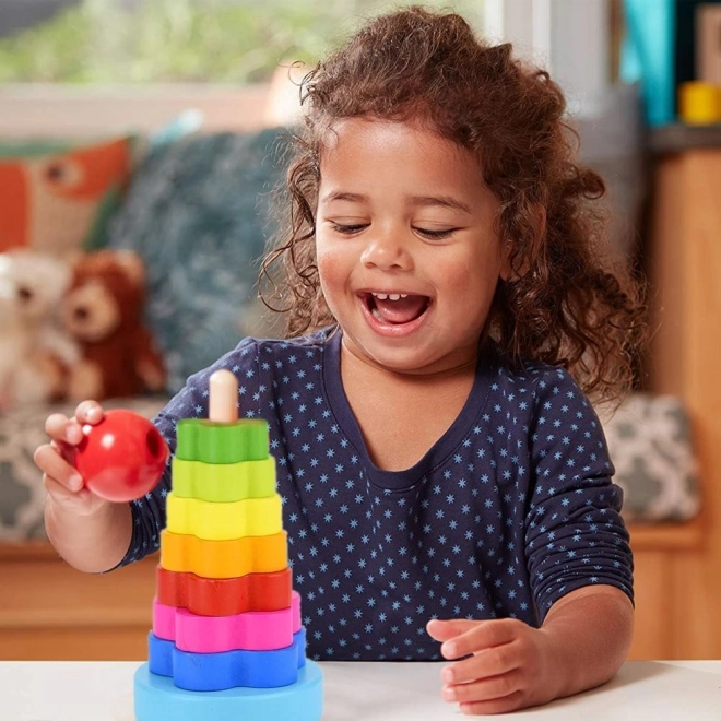 Zabavte děti na delší dobu s klasickou dřevěnou hračkou. Skládačka kroužky je klasická hra pro malé děti. Napomáhá jim k správnému rozvoji jemné motoriky, logiky i trpělivosti. Skládačka lze také využít k vyučování barev nebo tvarů. Hra spočívá v seskládání věžičky z kroužků, tedy od největšího až po nejmenší kroužek.