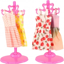 Součástí jsou ramínka a stojánky, které umožňují snadné uspořádání oblečení pro panenky na jednom místě.