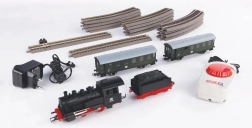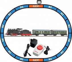 - Parní lokomotiva BR 98 s tendrem (1 ks), osobní vůz 2. třídy DB III (2 ks), koleje: obloukové R2 s podložím 55412 (12 ks), rovné G231 55401 (1 ks), rovné G231 s připojem 55406 (1 ks), podlož í pro napájecí svorku 55447 (1 ks), napájecí svorka 55270 (1 ks), analogový ovladač s napájecím zdrojem 55003 (1 ks)
