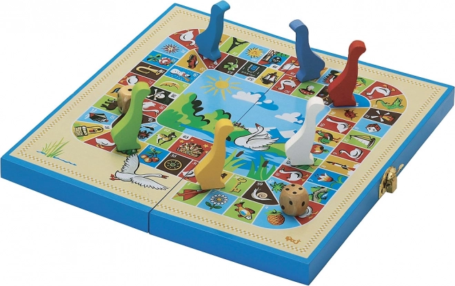 Oblíbená desková hra Husa od Jeujura přináší nejen zábavu, ale i kvalitní zpracování z masivního dřeva. V soutěžení 2–6 hráčů je cílem dosáhnout vítězného pole číslo 63. Pravidla jsou jednoduchá a umožňují snadné zahájení hry, ideální jak pro rodinné večery, tak pro cestovní zážitky.
