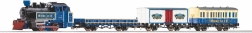 - parní lokomotiva (1 ks), osobní vůz (1 ks), nákladní vozy (2 ks), obloukové koleje R2 s podložím 55412 (12 ks), rovná kolej G231 s podložím 55401 (1 ks), rovná kolej G231 s napájecím připojením 55406 (1 ks), podložím pro napájecí svorku 55447 (1 ks), napájecí svorka analogová 55270 (1 ks), bezdrátové analogové ovládání s napájecím zdrojem (1 ks)