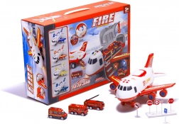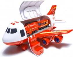 Připraveno k zásahu ze vzduchu! Hasičské letadlo–transportér snadno pojme přiložená vozidla i značky a díky zadní sklopné rampě je rychle vyloží přímo do „zóny zásahu“. Boční otevírání usnadní manipulaci uvnitř a odnímatelná křídla ušetří místo při ukládání.