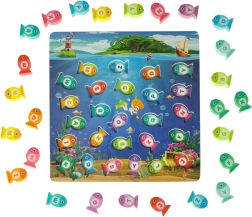 Připojte se k kouzelnému podvodnímu světu a zažijte nekonečnou zábavu s dřevěnou hrou na lovení rybiček. Tato vzdělávací hra pomáhá dětem učit se písmenka, barvy a počítání. Rybky označené jednotlivými písmeny musí být přiřazeny ke správným otvorům a můžete je také chytat pomocí magnetické udice. Celý proces pomáhá rozvíjet koncentraci a trpělivost.