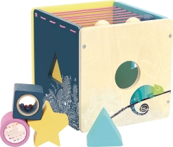 Děti mohou vkládat různé tvary do odpovídajících otvorů, což rozvíjí jejich jemnou motoriku a prostorovou orientaci.