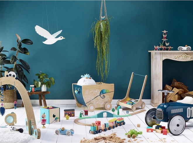 Dřevěný vozík od značky Vilac je stylové a funkční řešení pro ukládání dětských hraček. S pogumovanými kolečky a krásným designem je vozík snadno přemístitelný a poskytuje tichý chod na tvrdých podlahách.