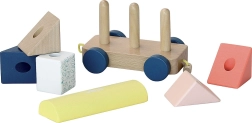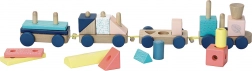 Barevné kostky a pojízdný vlak podněcují kreativitu a představivost dětí.