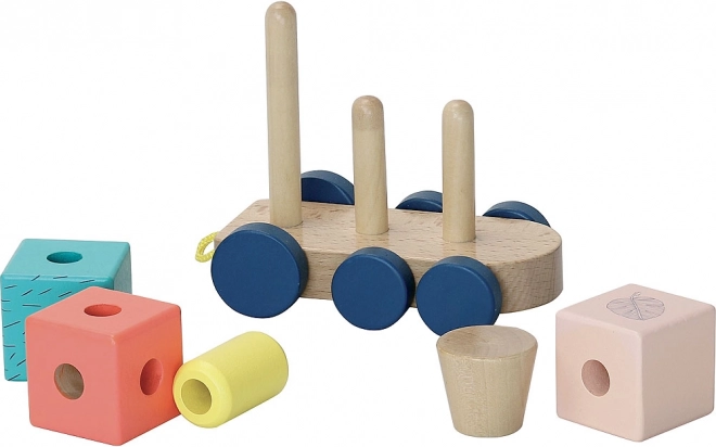Hračka, která podporuje rozvoj jemné motoriky a koordinace díky skládání a manipulaci s kostkami.