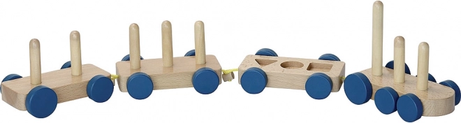 Textilní poutka a dřevěné kuličky zajišťují bezpečné spojení částí vlaku.