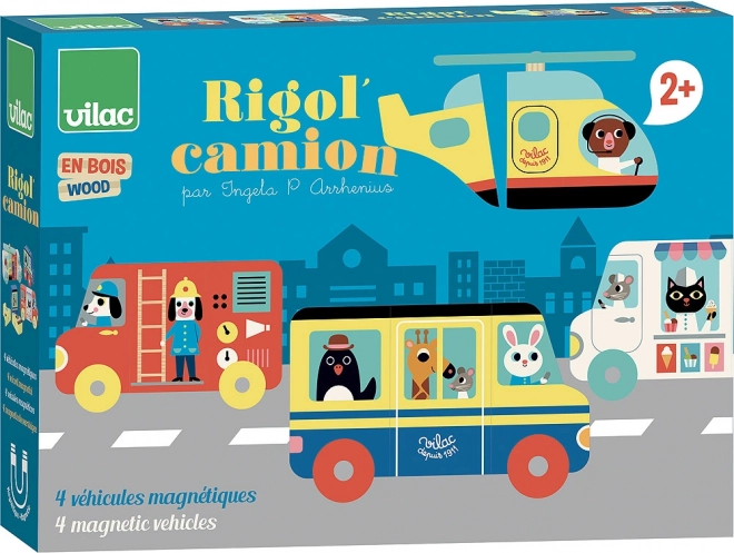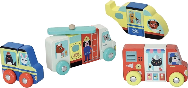Toto kvalitní dřevěné magnetické puzzle přináší dětem nekonečné možnosti skládání. Díky magnetickým dílkům lze vozidla snadno spojovat a znovu rozebírat, a dokonce mezi sebou díly vtipně kombinovat. Veselé barvy a retro ilustrace od umělkyně Ingely P. Arrhenius dělají z každého hraní poutavý vizuální zážitek.
