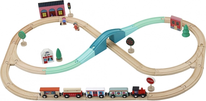 Sada je kompatibilní s dalšími dřevěnými vláčkodráhami na trhu, takže trať můžete kdykoli rozšířit. Retro kufřík zajišťuje praktické uložení a přenášení, a originální design Ingely P. Arrhenius dodává celé sadě jedinečný styl.