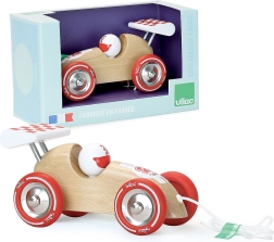 Stylové tahací závodní autíčko z lakovaného dřeva s kovovými pogumovanými koly a pevnou šňůrkou pro snadné tahání. Hračka podporuje rovnováhu, hrubou motoriku a koordinaci pohybů. Kvalitní zpracování a nadčasový design zaručují dlouhou životnost. Vyrobeno ve Francii.