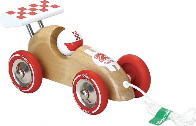 Toto elegantní dřevěné závodní auto s výraznými červenými detaily a křídlem si děti zamilují na první pohled. Díky šňůrce ho snadno vezmou na procházku po bytě i venku a při tahání přirozeně rozvíjejí stabilitu a koordinaci. Pogumovaná kovová kola zajišťují plynulou a tichou jízdu.