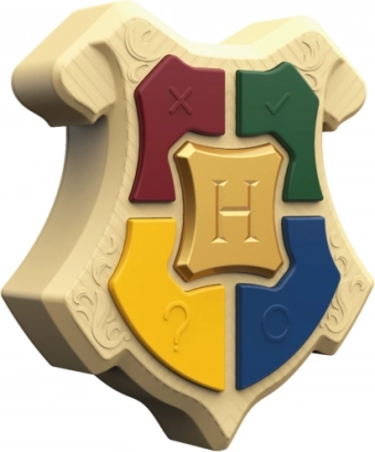 Barevné sekce červená, zelená, žlutá a modrá odkazují na školní koleje a středové „H“ podtrhuje autentický vzhled pro fanoušky světa HARRY POTTER.