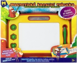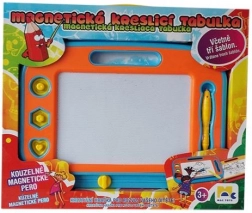 Magnetická kreslicí tabulka je ideální volbou pro malé umělce doma i na cestách. Díky kouzelnému magnetickému peru a třem razítkům si děti užijí hodiny tvoření bez potřeby papíru a pastelek. Jediným posunem mazací lišty obrázek zmizí a plocha je připravena na další dílo.