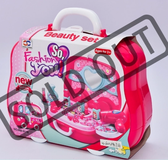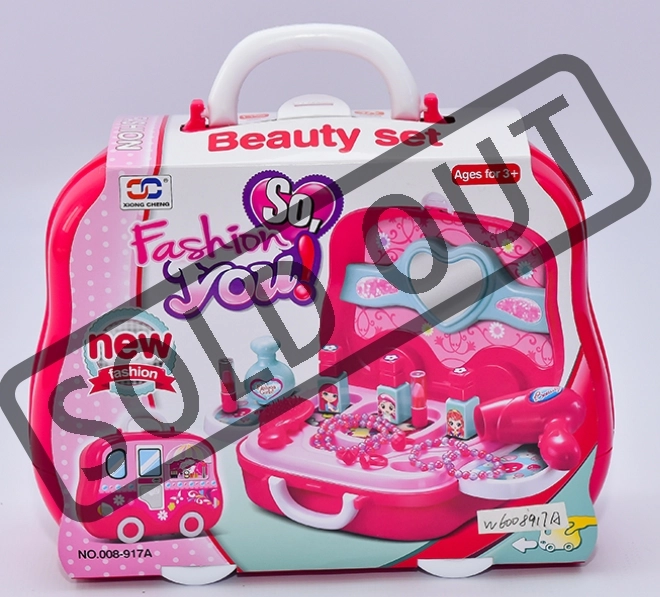 Součástí sady je zrcátko, rtěnky, laky na nehty, parfém, fén, hřeben, náramky a prstýnky – vše vyrobené z lehkého plastu bezpečného pro děti. Výbava je navržena tak, aby byla snadno uchopitelná i pro malé ruce a podporovala jemnou motoriku a kreativní hru.