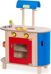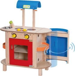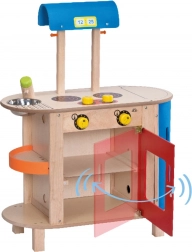 Kuchyňka obsahuje multifunkční sporák s vestavěnou troubou a dvouplotnovou varnou deskou. Ovladače vydávají cvakavé zvuky pro realistické použití.