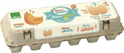 Zvukové pexeso ve tvaru vajec v klasickém kartonovém obalu je ideální pro rozvoj senzorických schopností u dětí. Hračka podporuje paměť tím, že děti hledají dvojice vajíček se stejným zvukem.