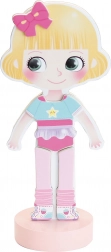 - 1 dřevěná figurka na podstavci, 36 magnetických dílků oblečení a doplňků