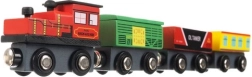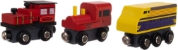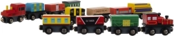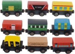 Set obsahuje 3 lokomotivy a 9 vagónků v různých barvách, nabízí tak pestrou zábavu.