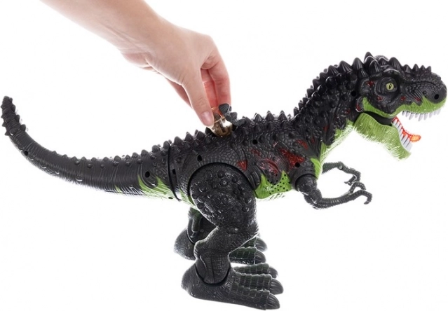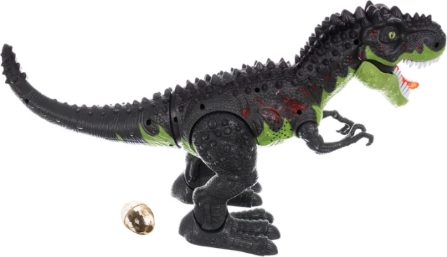 Vedle světelných a zvukových efektů má tento T-Rex schopnost klást vajíčka. Prostřednictvím speciálních otvorů na zádech hračka snáší vajíčka do přiloženého hnízda.