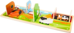 Děti mohou nahlížet za vrátka a objevovat schovaná zvířátka, což podporuje jemnou motoriku, koordinaci ruka–oko a zábavné učení.