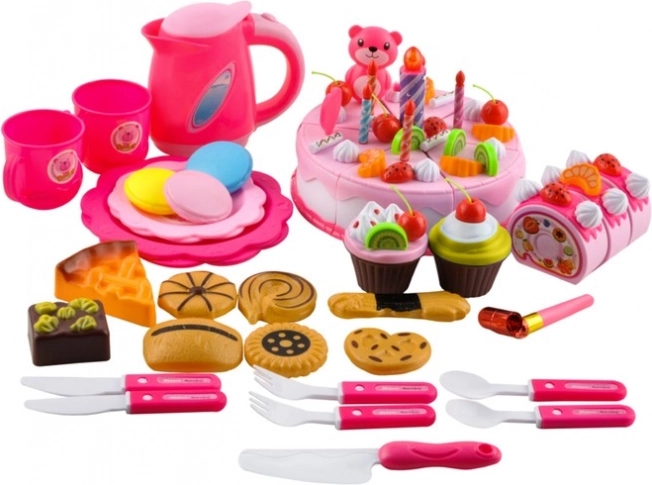 Růžový narozeninový dort se skládá ze 6 kusů, které se k sobě spojují suchým zipem. Sada obsahuje také mnoho doplňků a dekorací, kterými můžete ozdobit narozeninový dort dle libosti. Kreativní zábava nikdy nekončí! Doplňky lze měnit, přeskupovat, přesouvat – vytvoř si svůj vlastní dokonalý dort.