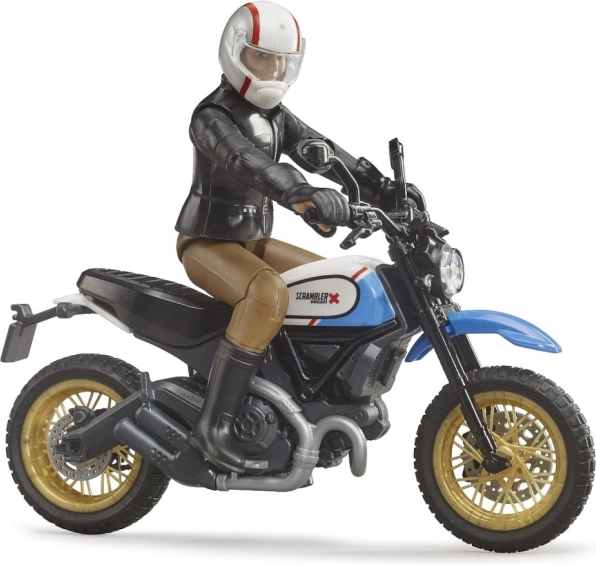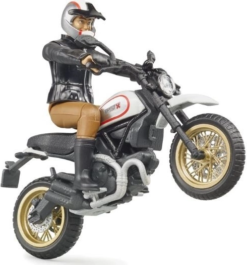 Model Bruder z řady BWORLD přináší autentický zážitek z jízdy. Motocykl Scrambler DUCATI Cafe Racer zaujme realistickými detaily, od designu motoru až po zlaté ráfky, a jezdec s plně pohyblivými klouby umožňuje dynamické pózy i akční scénáře. Robustní zpracování zaručuje dlouhou životnost a bezpečnou zábavu.