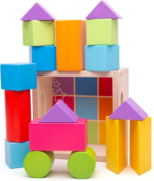 • Set obsahuje 17 barevných kostek různých tvarů, které podporují rozvoj zručnosti a koordinace ruka-oko.
