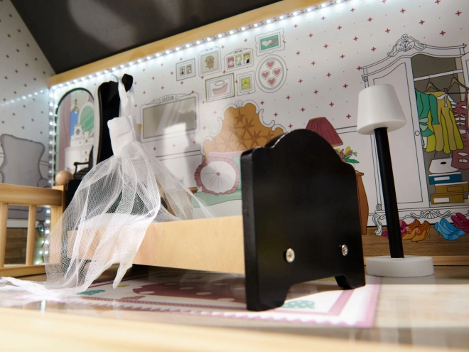 Domeček je vybaven působivým LED osvětlením, které nejenže vypadá fantasticky, ale skvěle poslouží i jako noční lampička. Velké množství prvků poskytuje nekonečné možnosti zábavy. Detaily, jako jsou miniatury nábytku, grafiky na stěnách a osvětlení, činí tento domeček výjimečným.