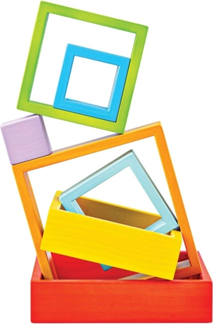 Vkládání do sebe, stavění věží i rámování obrázků rozvíjí koordinaci oko–ruka a prostorové uvažování zábavnou formou.