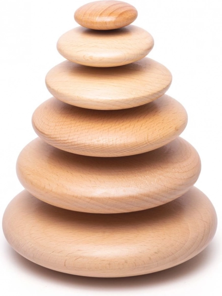 Tato otevřená balanční hra bez návodu vybízí děti k vlastní fantazii: mohou stavět věže, tvořit obrazce, třídit podle velikosti nebo si z oblázků udělat stylovou dekoraci v pokojíčku. Přirozený vzhled a hladký povrch dřeva zajišťují příjemný hmatový zážitek a klidnou soustředěnou hru.