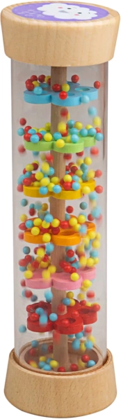 Objevte uklidňující zvuk deště s tímto kvalitním chrastítkem Bigjigs Baby. Při naklánění se uvnitř pohybují barevné kuličky a vytvářejí poutavý vizuální i zvukový efekt. Hračka je vyrobena z odolného dřeva a plastu, pochází ze zodpovědných zdrojů a splňuje evropské bezpečnostní standardy – ideální pro nejmenší od narození.