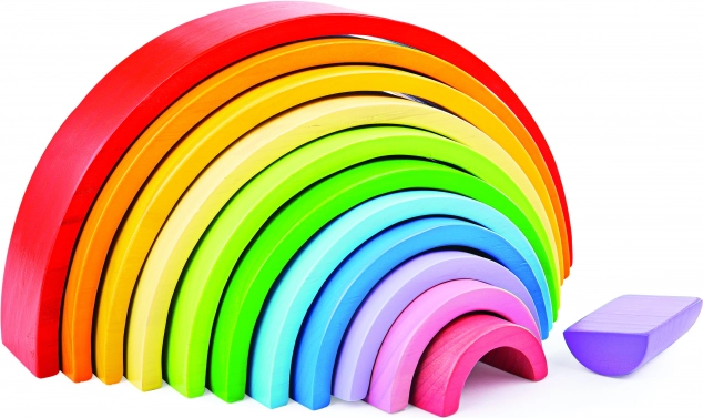 Duha je vyrobena z kvalitního, zodpovědně získaného dřeva a barvena bezpečnými, netoxickými barvami. Splňuje aktuální evropské bezpečnostní normy, takže se můžete spolehnout na bezpečné a dlouhodobé používání. Po skončení hry vytvoří pestrá paleta oblouků krásný designový prvek v dětském pokoji nebo školce.