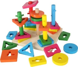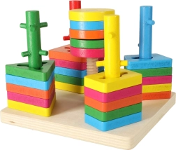 Tato dřevěná edukativní hračka je ideální pro rozvoj jemné motoriky a kognitivních dovedností vašeho dítěte. Syté barvy a různé tvary pobídnou dítě ke hře a učí ho rozpoznávat tvary a barvy.