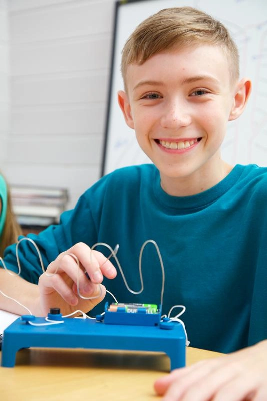 Stavebnice podporuje zručnost, trpělivost a koordinaci oko–ruka. Je ideální pro domácí zábavu, kroužky i školní projekty STEM. Kompaktní plastová základna s přepínačem a držákem baterií umožňuje snadné přenášení a bezpečné používání.